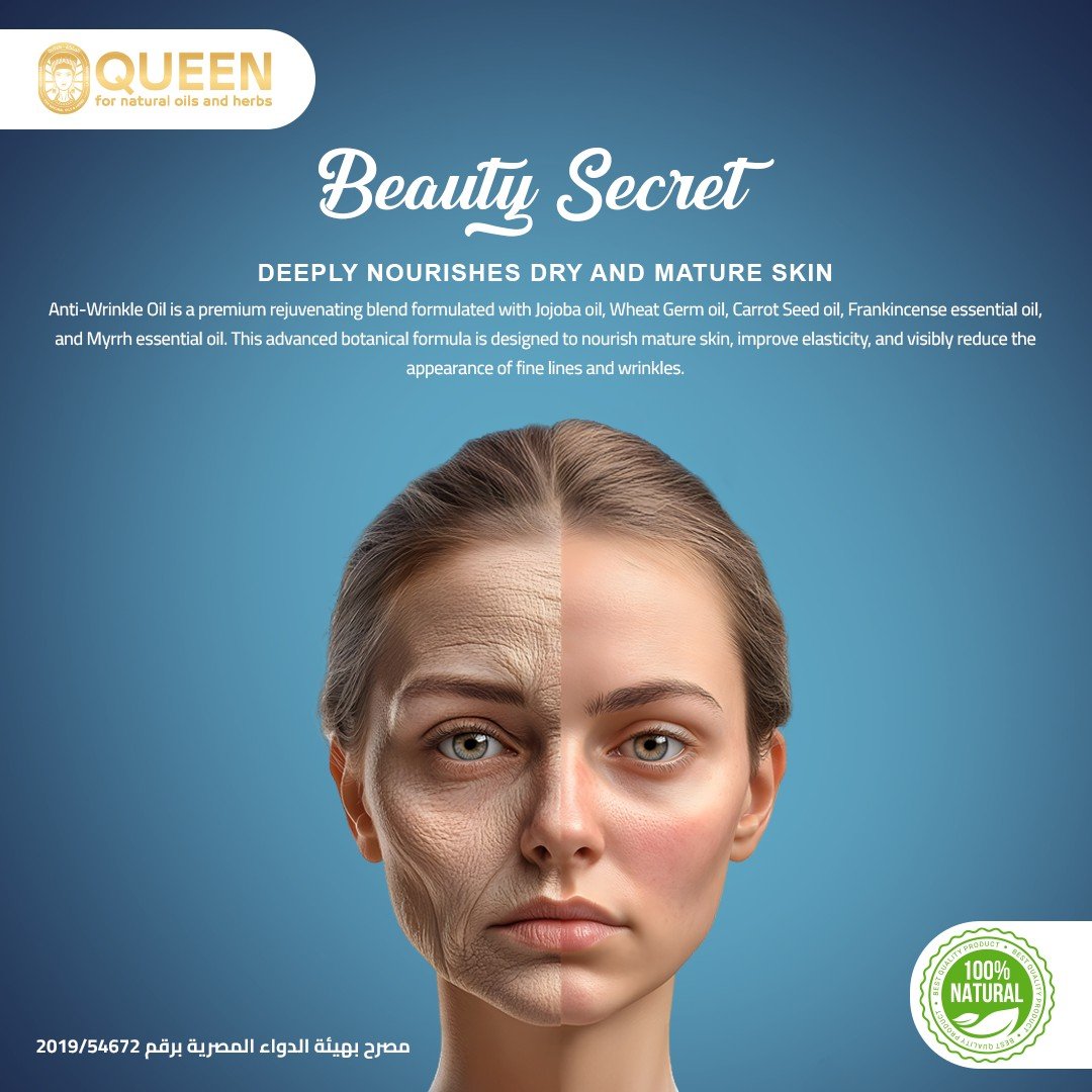 Anti-Aging Oil is a premium rejuvenating blend formulated with Jojoba oil, Wheat Germ oil, Carrot Seed oil, Frankincense essential oil, and Myrrh essential oil. This advanced botanical formula is designed to nourish mature skin, improve elasticity, and visibly reduce the appearance of fine lines and wrinkles.