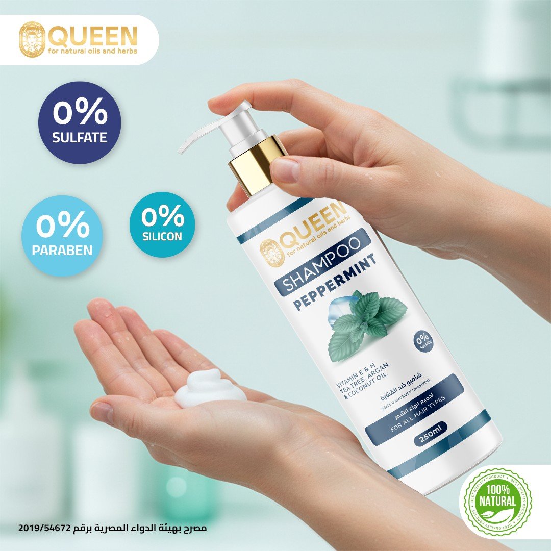 - Queen Peppermint Shampoo provides a refreshing sensation to the scalp and stimulates blood circulation, promoting hair growth and strength.