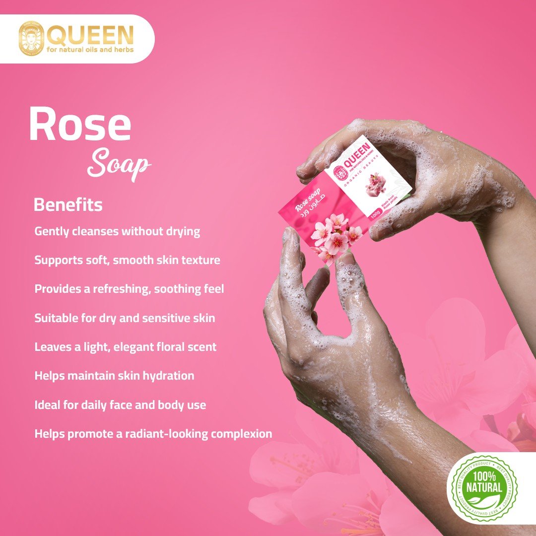 Rose Soap is a gentle and luxurious cleansing bar enriched with rose extract, known for its soothing, hydrating, and skin-balancing properties. This soap cleanses the skin delicately while helping maintain moisture, leaving the skin soft, smooth, and lightly scented with a calming floral rose aroma.